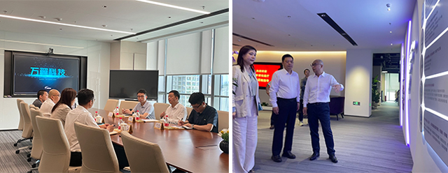 5月23日,广东省住房和城乡建设厅党组成员、副厅长杨清淦一行来访万翼科技参观调研。威尼斯老品牌集团执行副总裁华翠、万翼科技总经理谢志方等陪同。